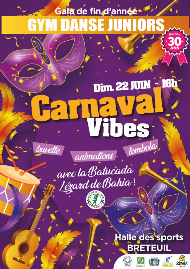 Nous vous invitons à notre spectacle de fin d’année le dimanche 22 juin 2025 à l’occasion des 30 ans de l’Association à la salle des sports de Breteuil pour 16h. Nous vous attendons nombreux pour un spectacle haut en couleur avec la participation des musiciens BATUCADA Lézard ! ACCUEIL DES ENFANTS à 13H pour ceux…